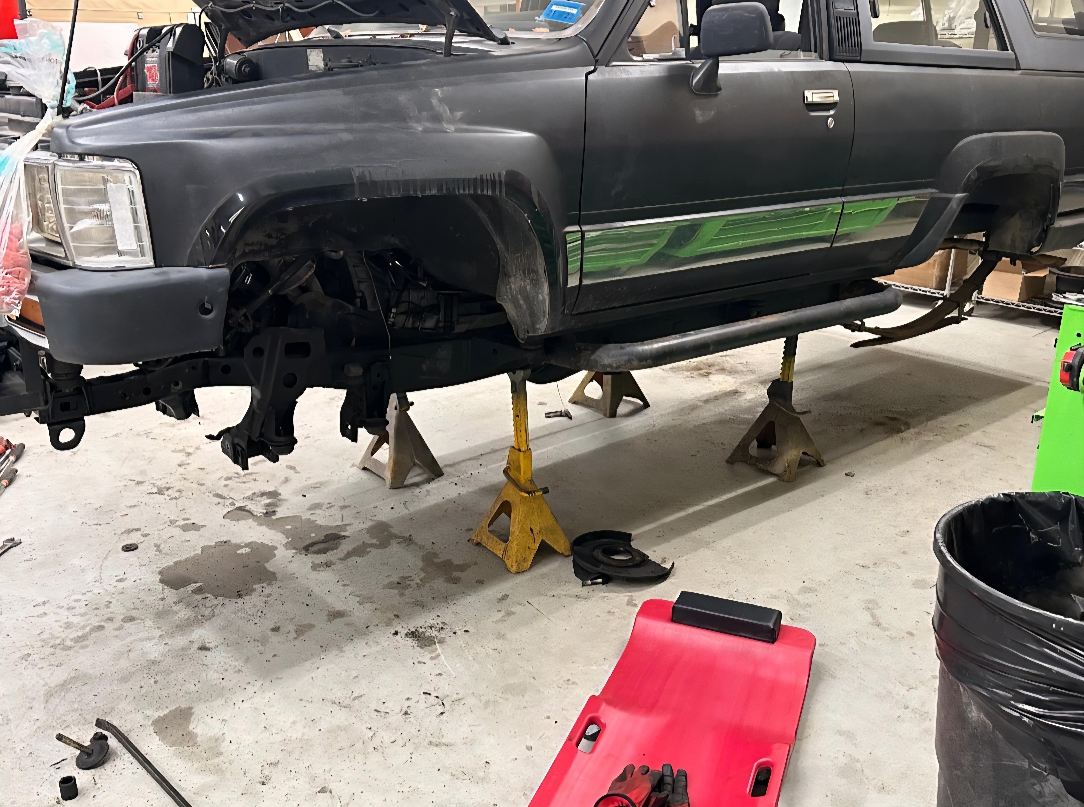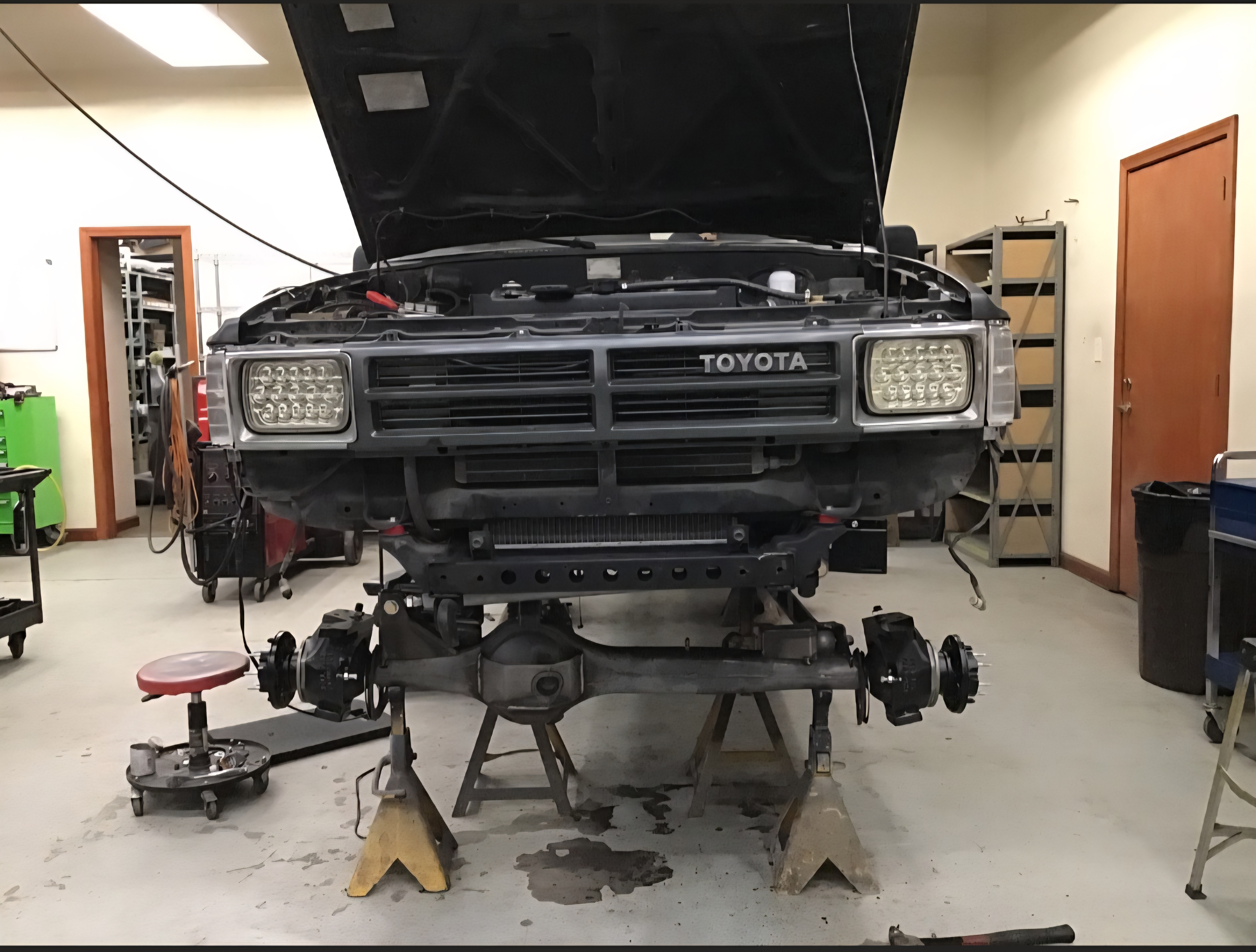 Jacob’s meticulous preparation took up the first two years of the build, dedicated to sourcing critical components. He gathered front and rear Toyota 80-series axles from East Coast Gear Supply, Hellfire knuckles, Yukon 5.29 gears from East Coast Gear Supply, chromoly axle shafts, Fox coilovers, and Tom Woods driveshafts. This strategic gathering of parts allowed him to efficiently begin the build when it finally entered the shop.