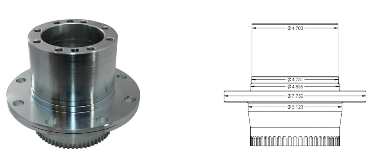 We wanted to create a full float 40 spline kit that fits our customers' needs. It is no secret that 35 spline is no longer strong enough for 43" stickies and the punishment that higher horsepower motors are creating. It is also no secret that 14 bolt spindles are bending. We saw a need in the market for a larger shaft with a spindle and hub that would hold up to the abuse. Just boring a spindle is impossible, machining a factory style hub for a larger bearing to take a slightly larger spindle also does not work. Current hubs on the market will not allow for a large enough spindle and significantly weakens the hub. There are many variables that have to be considered: Outer Diameter, Wall thickness, spindle nut size, material, and geometry. All of these parameters impact the other.